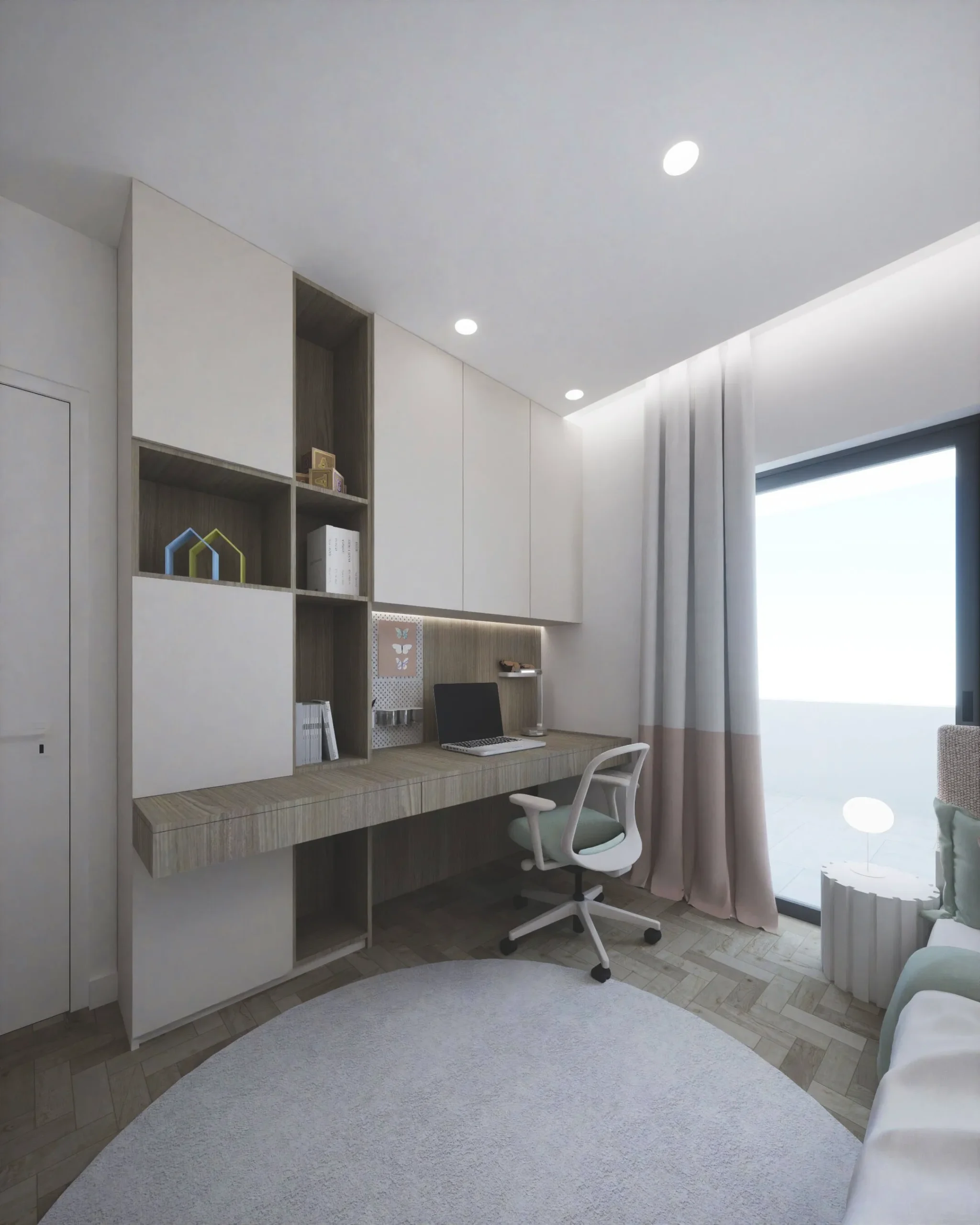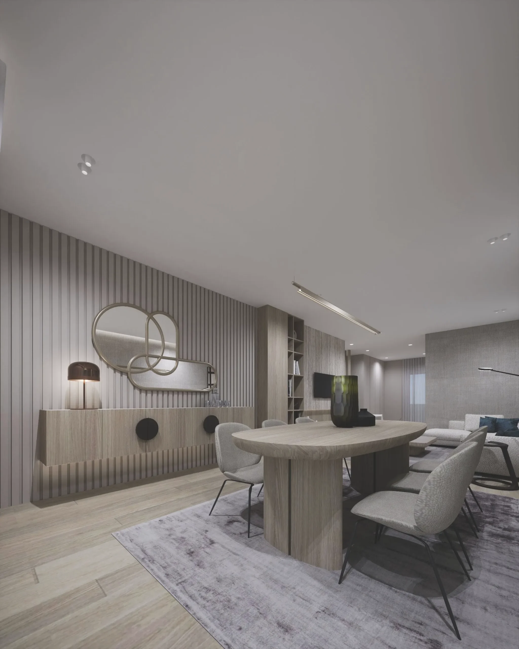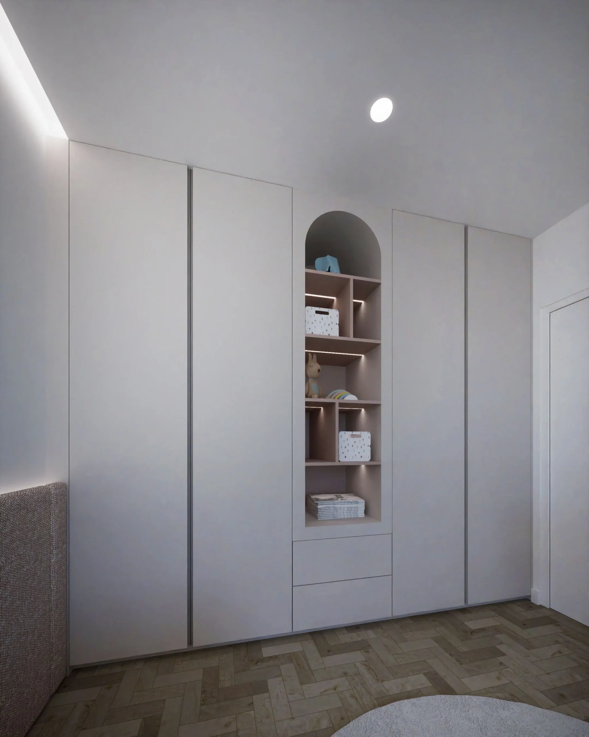 Designed around the everyday life of a young couple and their child, the interior unfolds as a warm and functional family home. The full renovation focused on clarity, flow, and comfort — creating a contemporary space that feels inviting from the very first step. Minimal yet emotionally resonant, the layout balances practical needs with a gentle, familiar atmosphere. Natural oak flooring, mirror cabinetry, textured textiles, wood panels, finishes form a material palette rooted in earthiness and ease. Every element supports a sense of quiet continuity, with thoughtful details that reflect the rhythm of modern family living. The result is a home that speaks softly — grounded, calm, and intuitively designed for togetherness.