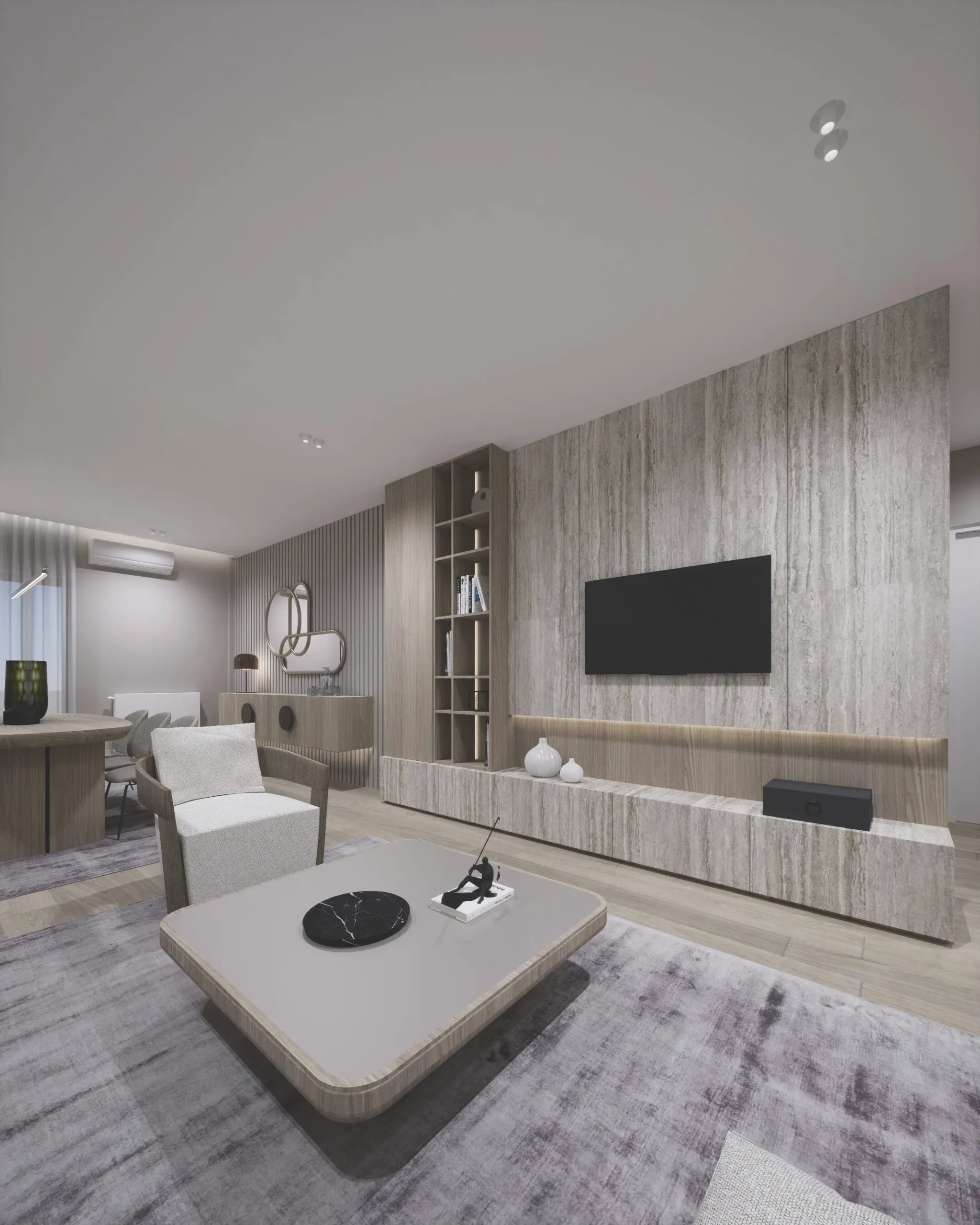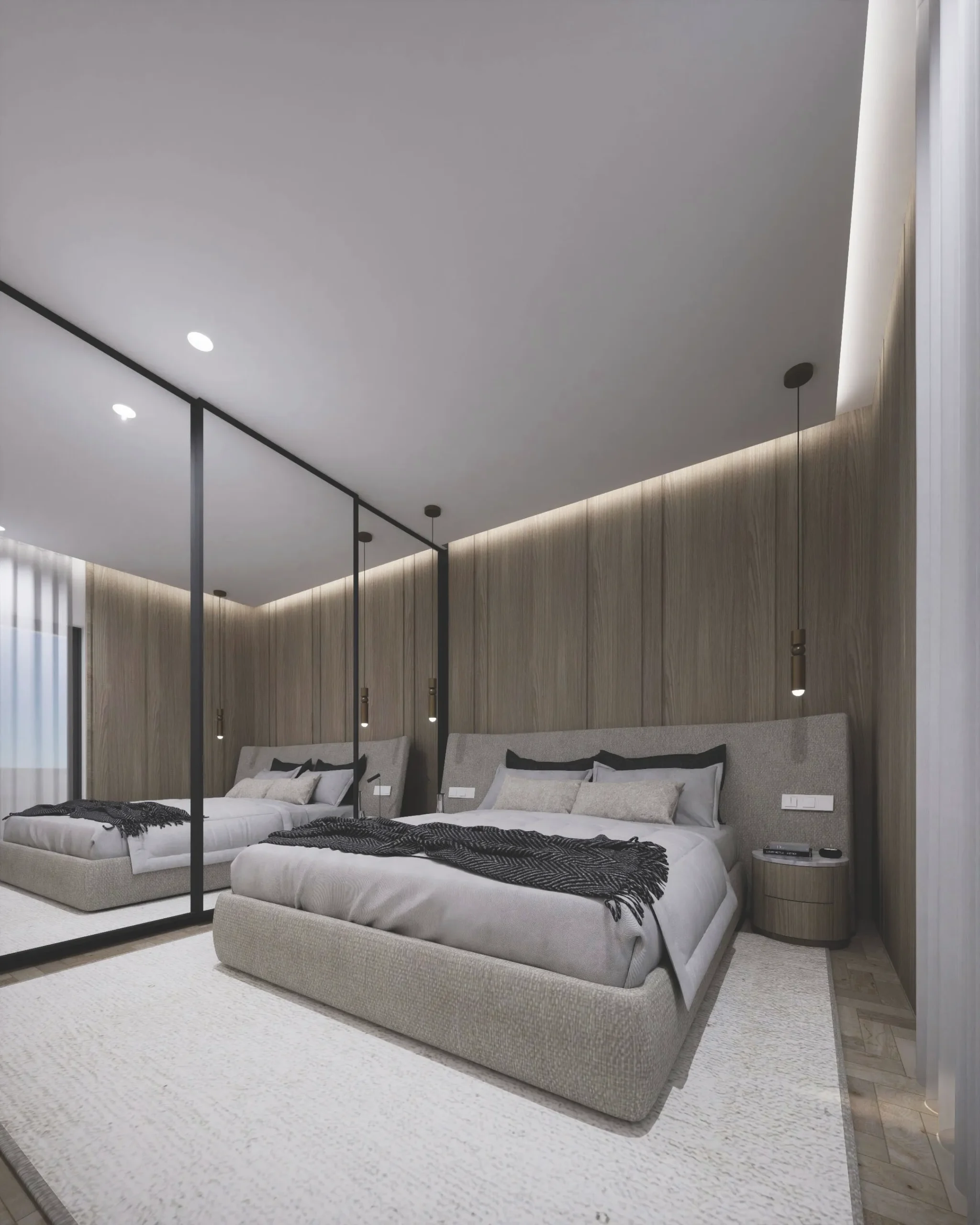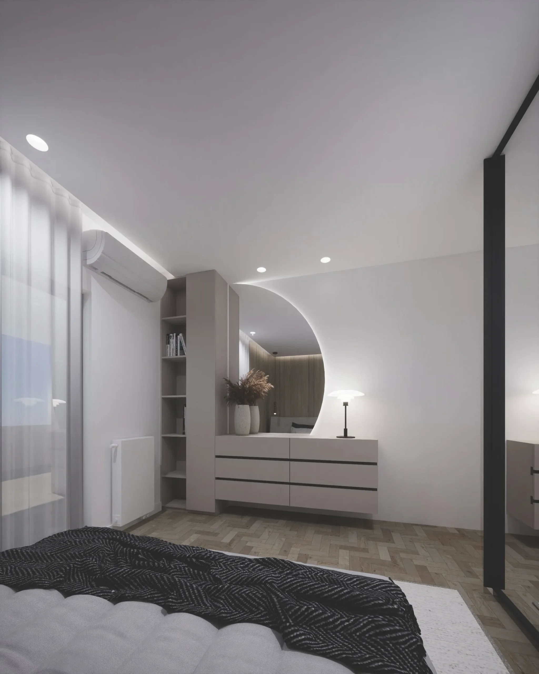 Designed around the everyday life of a young couple and their child, the interior unfolds as a warm and functional family home. The full renovation focused on clarity, flow, and comfort — creating a contemporary space that feels inviting from the very first step. Minimal yet emotionally resonant, the layout balances practical needs with a gentle, familiar atmosphere. Natural oak flooring, mirror cabinetry, textured textiles, wood panels, finishes form a material palette rooted in earthiness and ease. Every element supports a sense of quiet continuity, with thoughtful details that reflect the rhythm of modern family living. The result is a home that speaks softly — grounded, calm, and intuitively designed for togetherness.