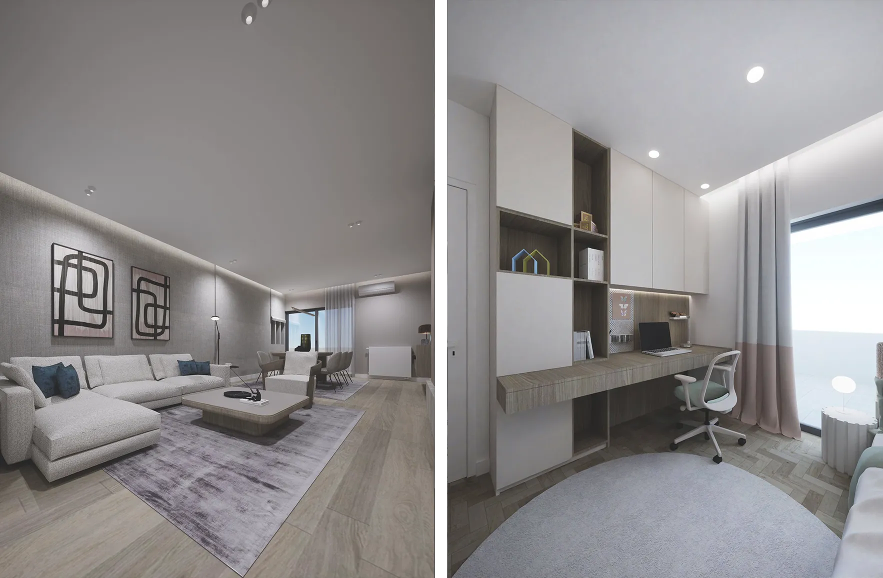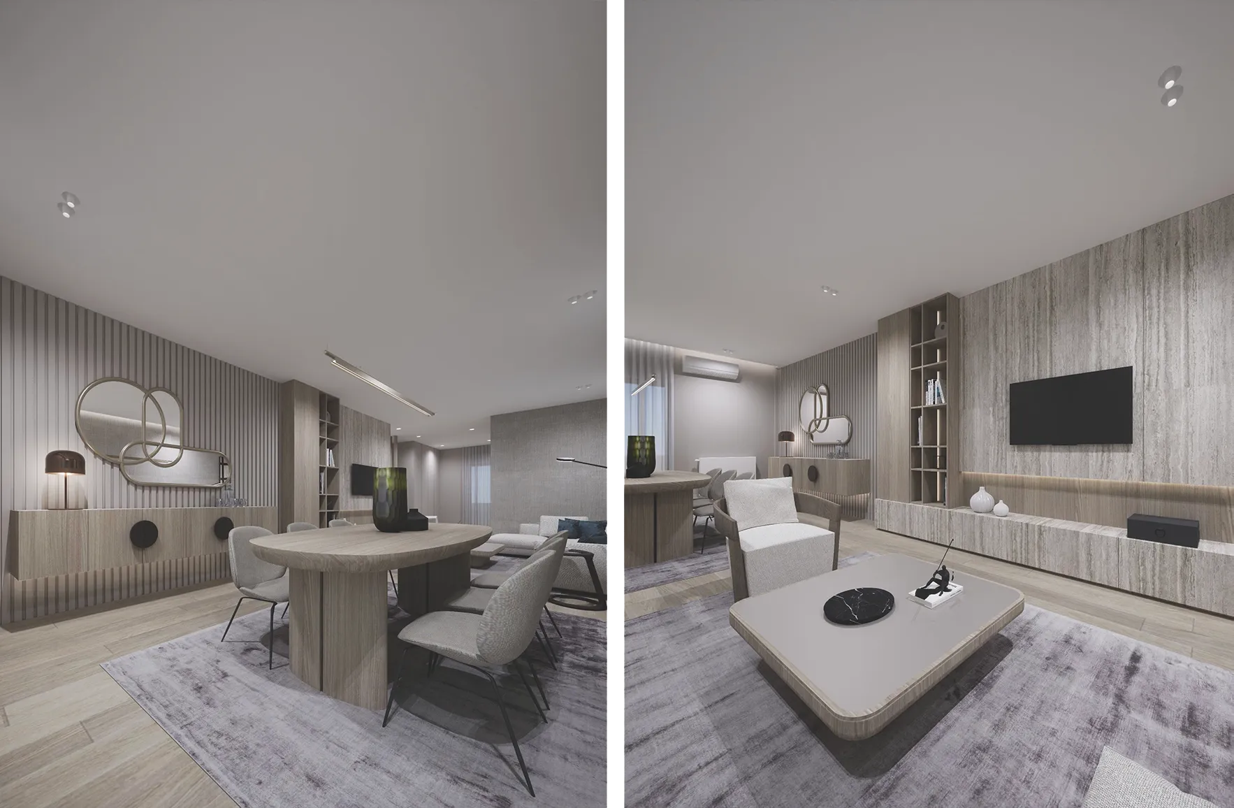 Μια πλήρης ανακαίνιση διαμερίσματος στην Αγία Παρασκευή έγινε με στόχο τη δημιουργία μιας ζεστής, λειτουργικής κατοικίας για ένα νεαρό ζευγάρι και τα παιδί τους. Ο ανασχεδιασμός της διαρρύθμισης εξυπηρετεί τις σύγχρονες ανάγκες οικογενειακής ζωής, εστιάζοντας στην πρακτικότητα και την οικειότητα.