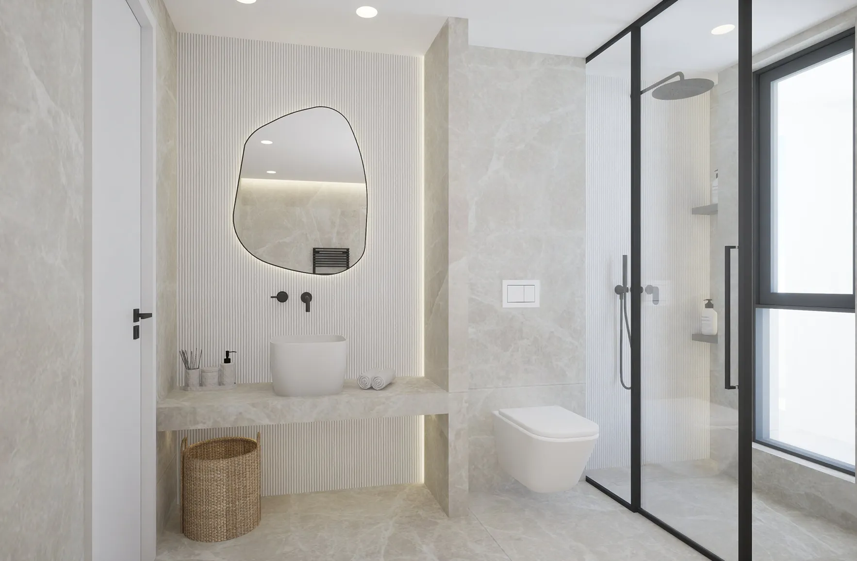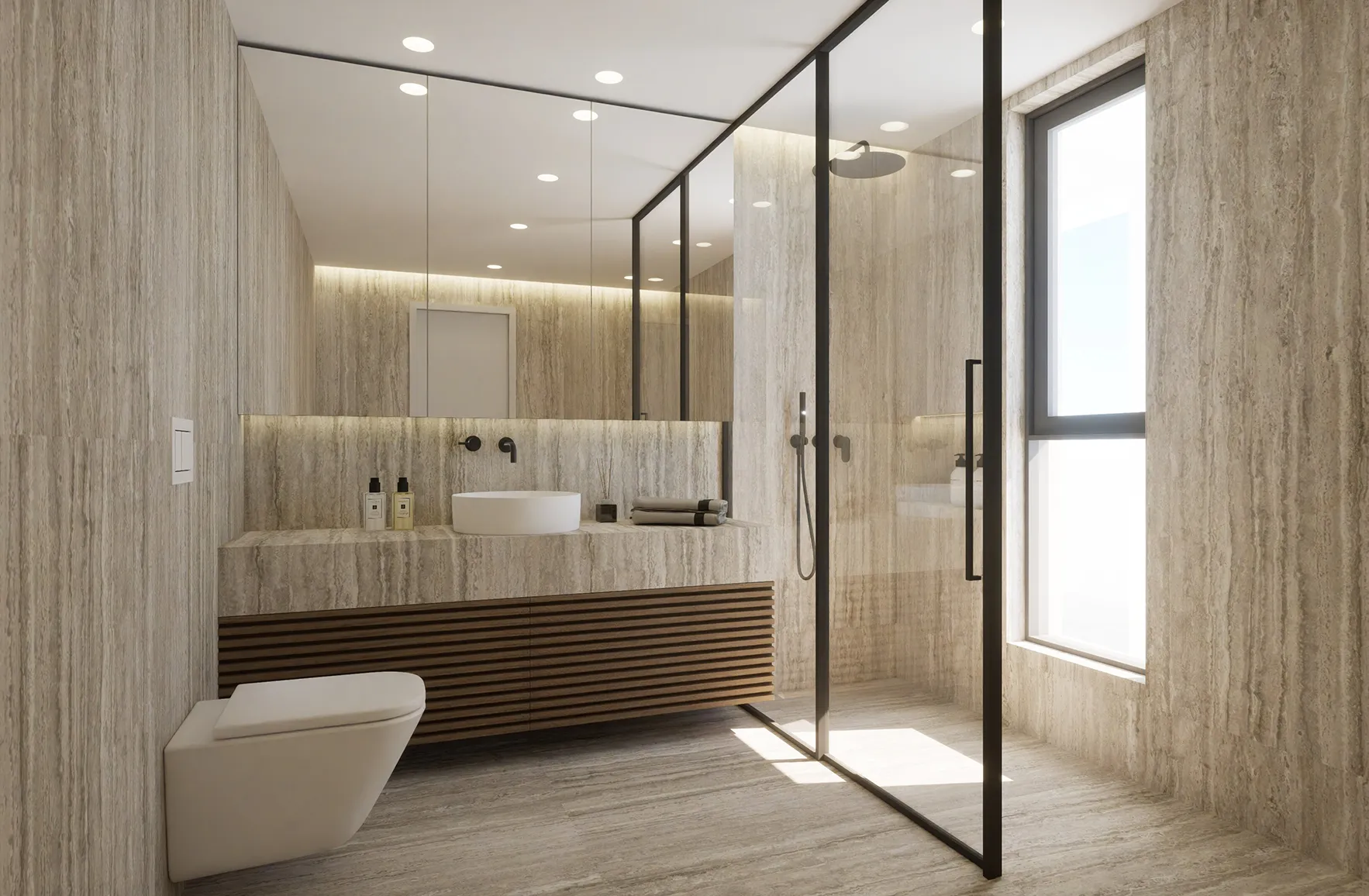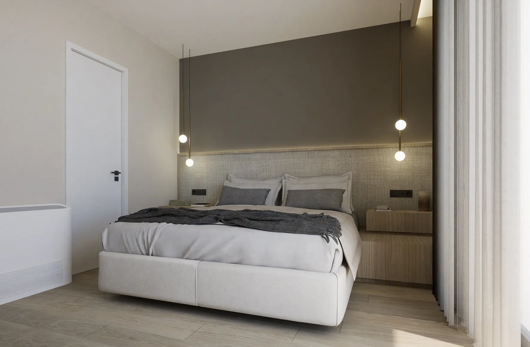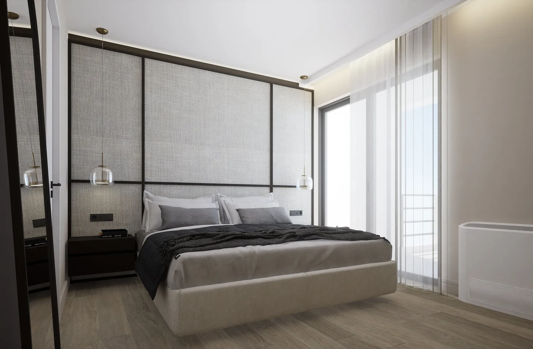 A Greek couple based in Marseille acquired this home as their personal retreat during visits to Athens. The goal was to create a contemporary and functional living space welcoming, calm, and subtly enriched with art and crafted detail. The design relied on natural materials and clean transitions. Oak wood flooring adds warmth, while sliding partitions with metal frames, some with glass, others combining fabric and glass, offer a sense of privacy while letting natural light travel deep into the space. A key architectural moment unfolds in the kitchen. Though small and limited to a single window, it was designed as a separate room, not part of the open plan, in line with the client’s wish. The wall facing the living area is a custom-built bookshelf, seamlessly incorporating a glass-panelled door that allows light to flow in while maintaining spatial clarity and privacy. The overall atmosphere is quiet and personal, with art thoughtfully placed throughout, forming a home of elegant restraint and emotional warmth.